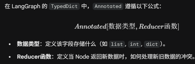 Annotated语法(如operator.add)在TypedDict上表现最自然,方便实现状态的增量更新。